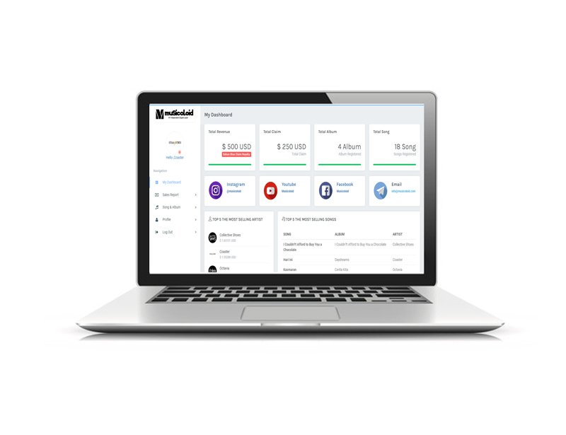Musicoloid Backstage memudahkan musisi melakukan claim royalty atas penjualan lagunya dengan Musicoloid dan mendapatkan bayaran dengan mudah. Musicoloid Backstage dapat di akses melalui tautan website Backstage.musicoloid.com yang dapat di akses dari Desktop maupun Smartphone. Musicoloid Backstage terus bekembang demi kesejahteraan musisi tanah air agar mendapatkan hak nya secara transparan dan up to date.